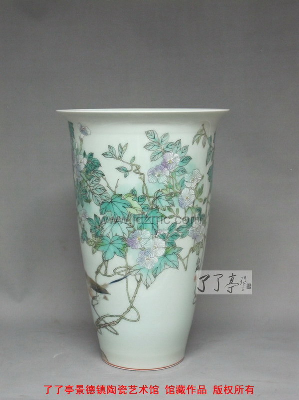 女性天生的细腻,那随风的润柔,注定了戴玉梅天生就是一个极富灵性的花鸟画家。欣赏她瓷器上的花鸟画您便能明白为什么古老的古彩艺术,能够在戴家身上温柔的转身。