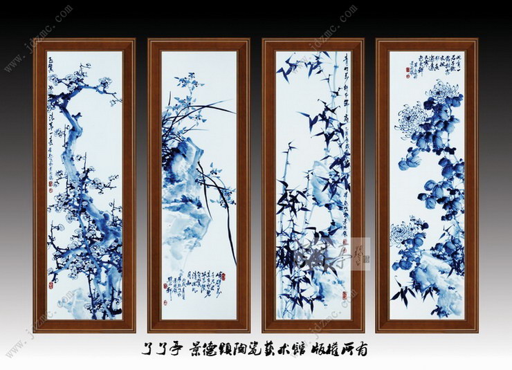 作品: 《梅兰竹菊四君子》釉下青花四条屏瓷板 |