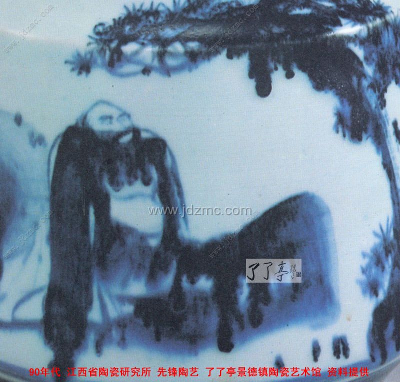 90年省所先锋陶艺-高士图 青花方肩瓶-徐庆庚