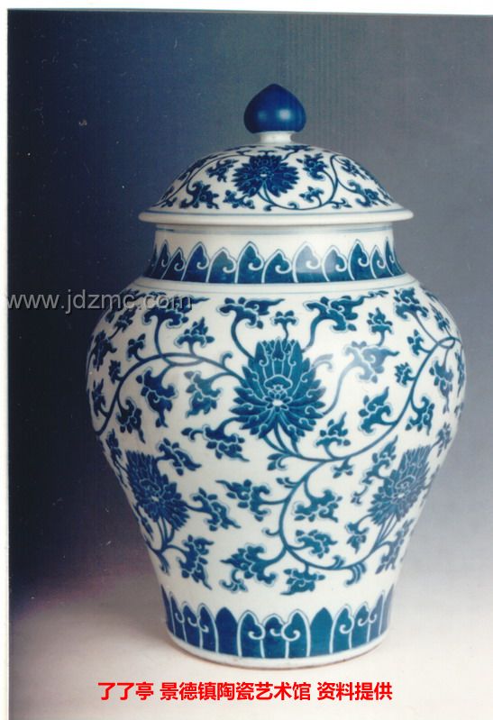 道光青花缠枝莲盖罐