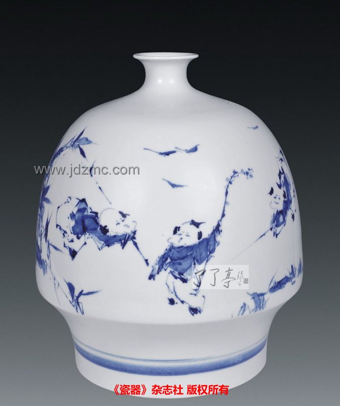 青花瓷瓶《惠风和畅》 高:37cm口径:7.5cm 作者:熊国辉(江西省工艺美术大师) 《惠风和畅》作者:熊国辉 熊国辉,陶瓷艺术家,擅长将古典题材运用现代技法予以展现,作品古朴而具时代气息。