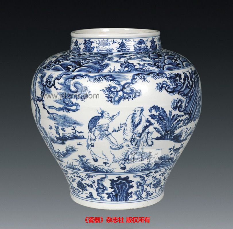 青花瓷瓶《松下问童子》 作者:朱天爱 高:39cm口径:20cm 《松下问童子》作者:朱天爱 朱天爱,1968年出生,陶瓷手工彩绘工国家二级技师。擅长用釉下装饰手法诠释瓷上人物画的形与神,作品多次荣获金奖。