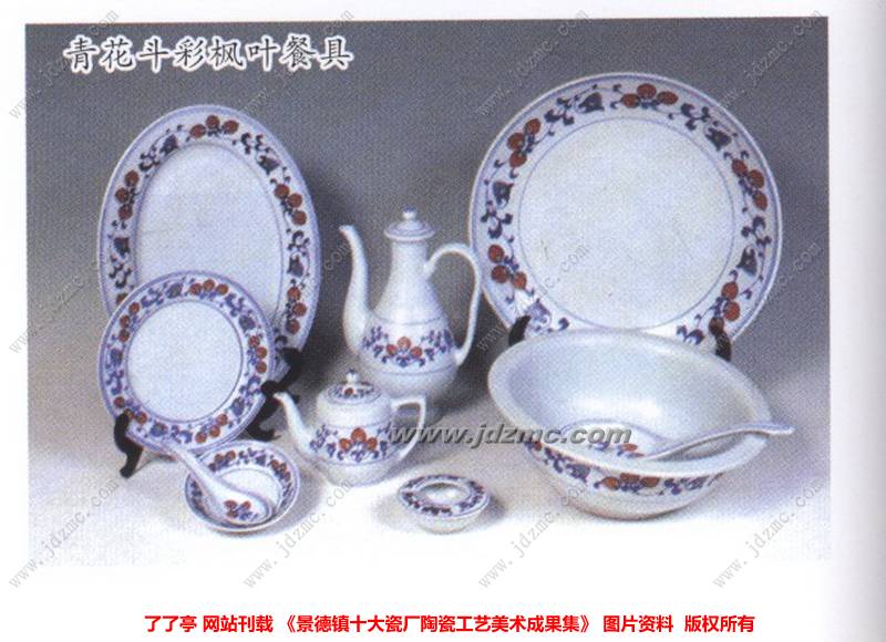 景德镇市人民瓷厂在大力发展青花瓷的同时,对青花斗彩也不断创新,且颇有成效。为了使青花瓷品种更加丰富,人民瓷厂早在20世纪80年代就将原有的彩绘车间生产重点转移到为青花瓷配套服务,使青花瓷可灵活地与新花、刷花、粗彩、洋金加彩、洋彩青花、粉彩、古彩,以及釉里红等相结合,争芳斗艳,异彩纷呈,形成独特的青花斗彩。人民瓷厂青花研究所成立后,专门设置了一个斗彩组,负责全厂青花斗彩的设计和绘制。其时,人民瓷厂生产出了不少的青花斗彩优秀作品。如青花斗彩45厘米奔马瓶式台灯和青花斗彩45厘米几何玉蕾台灯,就在1986年同时被评为全国工艺台灯优秀产品;“万年青”牌青花斗彩枫叶餐具1985年被省经委评为“优秀新产品”;1991年4月,人民瓷厂生产的“万年青”牌枫叶青花斗彩影青餐、茶具获得了第二届北京国际博览会铜质奖。青花斗彩这一古老的技艺,在新时期得到了进一步的发展,焕发出了新的活力。