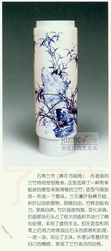 | 名作欣赏:石寿兰芳 青花书画筒 陆如 | |||||