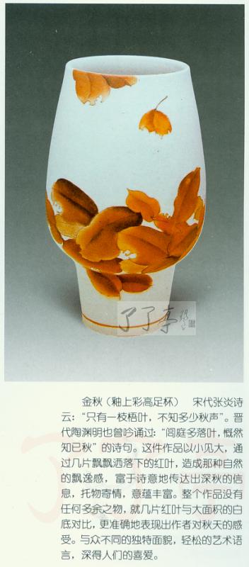 陶瓷艺术欣赏 《金秋》釉上彩高足杯 作者:张亚林