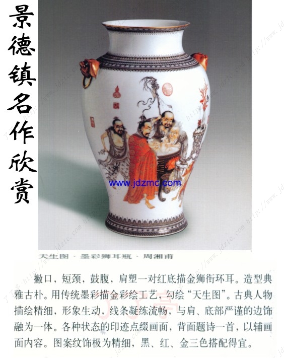 | 天生图·墨彩狮耳瓶·周湘甫-评介欣赏 | |||||