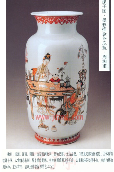 | 美女游乐图·墨彩·周湘甫- 天女散花·墨彩·周湘甫-鉴 木兰从军·墨彩描金冬瓜瓶· 婴戏图·墨彩描金图·周湘甫 天生图·墨彩狮耳瓶·周湘甫 |