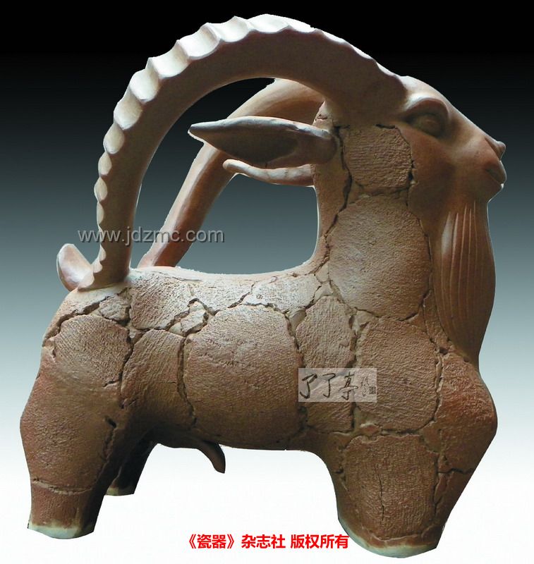 《领头羊》 作者: 周国桢 (了了亭 景德镇陶瓷艺术馆 资讯,本文刊载于《瓷器》杂志社 残联增刊)——《领头羊》是周国桢彻底颠覆以前采用泥板卷筒成型方法的一次创新尝试。这种“一笔定乾坤”的自然成型方法,比泥条构筑成型方法更显“下笔无悔”的气派。