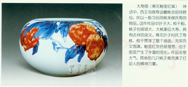 陶瓷艺术欣赏 《大寿图》青花釉里红红钵 作者:王恩怀