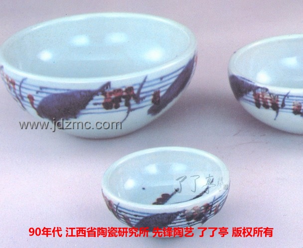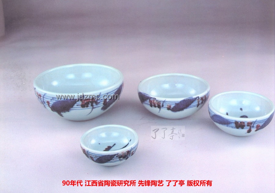 90年代 省所先锋陶艺《套碗》青花釉里红 刘影青