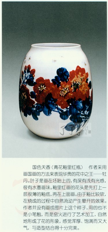 陶瓷艺术欣赏 《国色天香》青花釉里红瓶 作者:赖德全