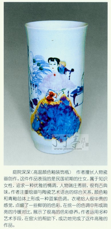 陶瓷艺术欣赏 《庭院深深》高温色釉装饰瓶 作者:李菊生