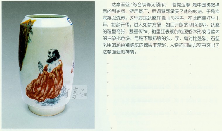 陶瓷艺术欣赏 《达摩面壁》综合装饰无颈瓶 作者:郭文连