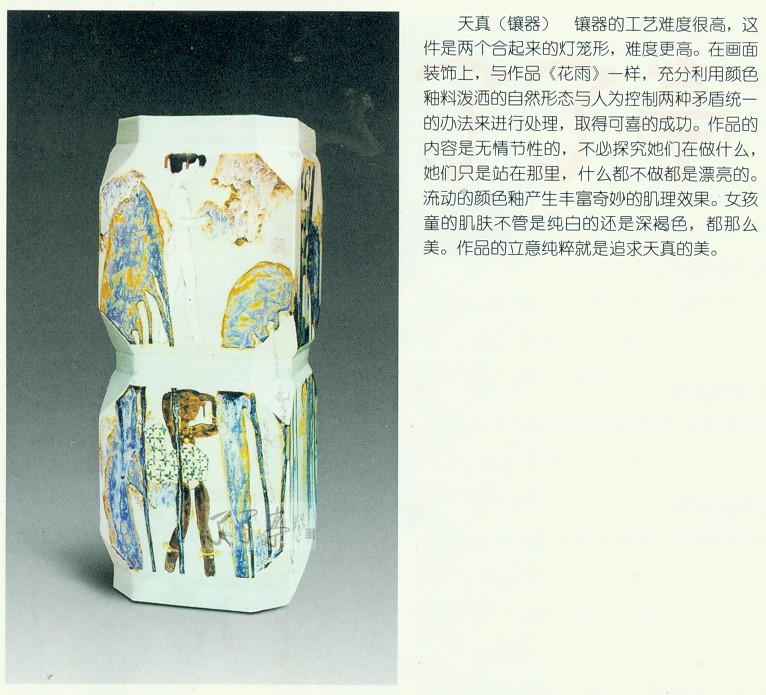 陶瓷艺术欣赏 《天真》高温色釉镶器 作者:陆军