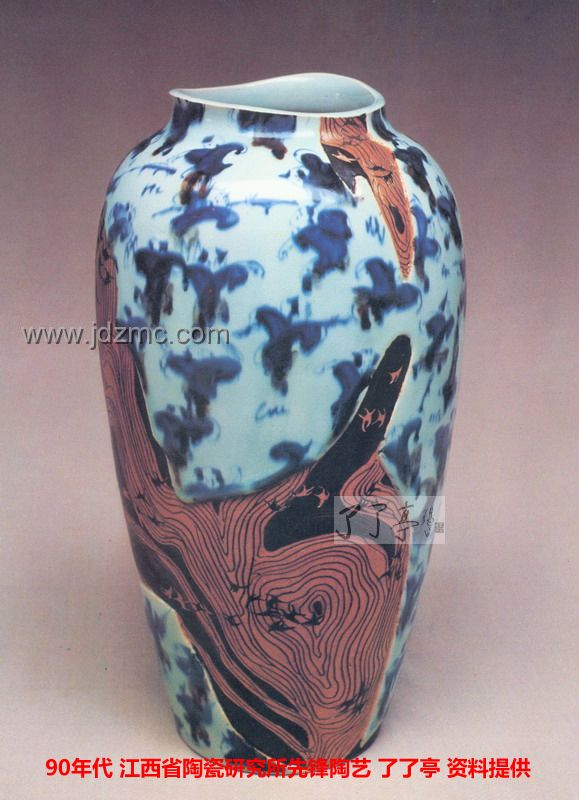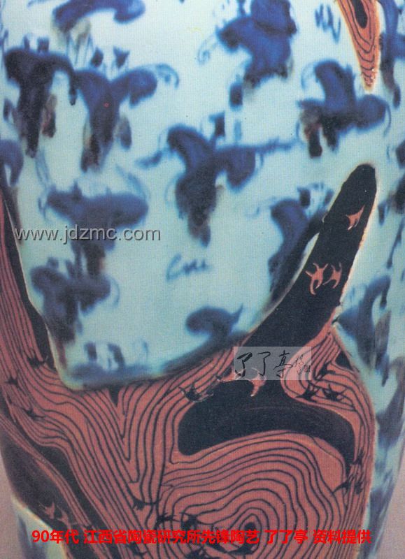 90年代 省所先锋陶艺《风雨归舟》颜色釉…