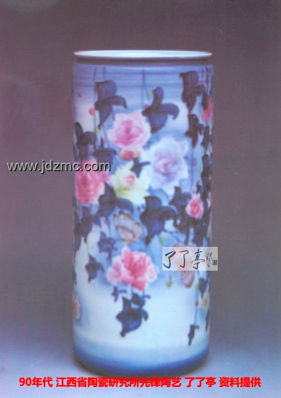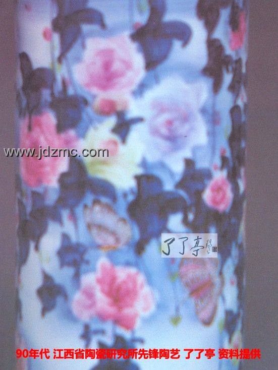 江西省陶瓷研究所 先锋陶艺《花蝶》青花斗彩劲松瓶 戚培才