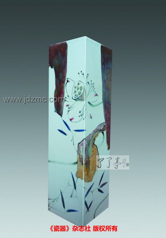 釉上彩镶器《大唐艺术》 作者:尉涧松 高:60cm口径:16cm 釉上彩镶器《大唐艺术》作者:尉涧松 旅日画家尉涧松,1959年生,所创作的高温要变瓷艺术作品融深厚笔墨功底和渊博知识结构于一体,打开了通往艺术巅峰的心灵之窗。