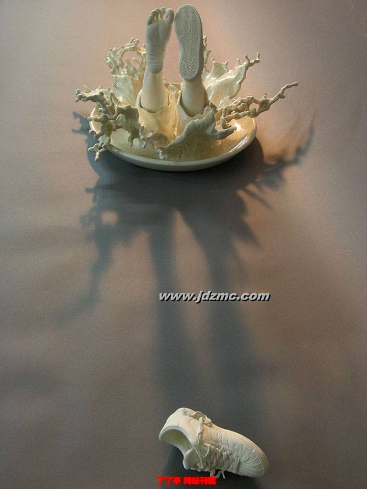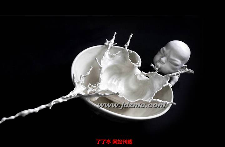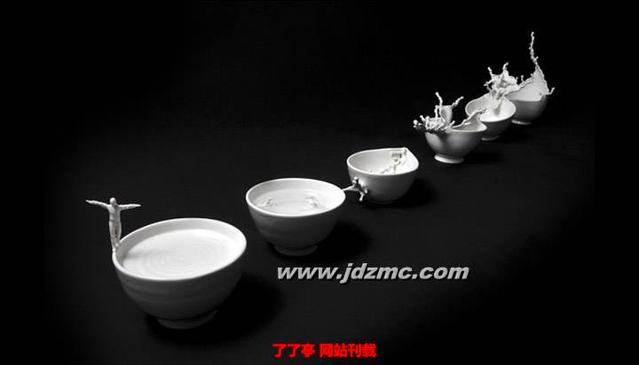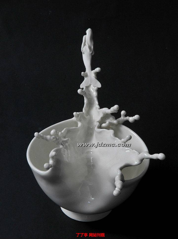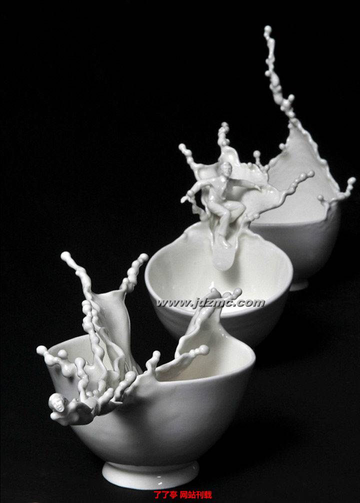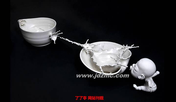 Johnson Tsang以娴熟的技法将陶瓷制品的细腻柔美与人物或物件的动作动态完美地融合,宛如一幅时间突然停止静帧动画。而关于液体的主题,则将液体的流动扩展了可视化概念。