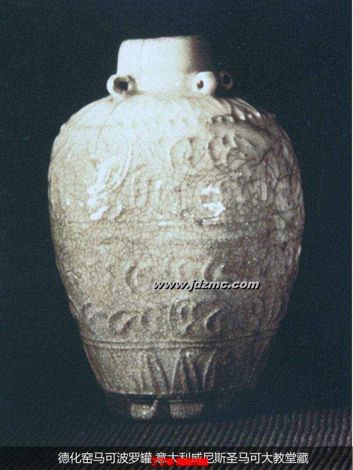 马可•波罗有关于德化窑烧制技术的记载,是目前欧洲发现研究中国瓷器的最早的文献记载,德化窑也是马可∙波罗唯一亲自考察并详细记载的中国陶瓷产区。马可•波罗临行之际,在泉州港购买了若干件瓷器,带回了故乡威尼斯,其中有一件德化窑青白瓷两系罐至今仍陈列于威尼斯圣马可大教堂。而《马可•波罗游记中》首次详细提到的“中国制瓷法”,为欧洲仿制中国瓷器留下了伏笔。直接引发了300年后的欧洲厨房革命和“洛可可艺术”。
