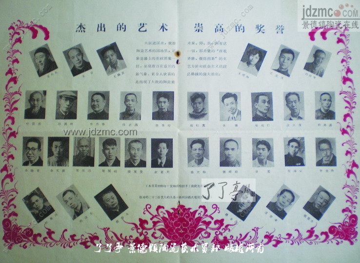 景德镇自古以来,以瓷为业,积蓄了丰厚的陶瓷文化底蕴,被世人称为瓷都。千年窑火,犹如凤凰涅槃,催生出景德镇陶瓷文化的灿烂,实为中国陶瓷史上的明珠。在景德镇陶瓷史上,涌现出了一批批杰出的陶瓷艺人,为景德镇陶瓷事业的发展做出了不容忘却的贡献。 进入新中国后,十分重视陶瓷人才,为他们展现才艺提供了良好的条件,并给予了他们崇高的荣誉。1959年,新中国成立10周年,景德镇市委市政府评出了首批陶瓷美术家,33人获此殊荣。 他们是:王大凡、王步、王雪如、王锡良、毛龙汲、叶震嘉、刘雨岑、毕渊明、汪以俊、余文襄、余翰青、吴成仁、吴康、张志汤、张松茂、张景寿、杨秦川、杨海生、李盛春、周国桢、周湘浦、段茂发、赵惠民、徐天梅、龚耀庭、黄海云、章鉴、曾龙升、程兆鑫、蔡寿生、蔡金台、潘庸秉、魏荣生。 在这批艺术家当中,如今健在的已经不到十人。时值新中国成立六十周年,为怀念已经作古的首批陶瓷美术家,本刊今起将推出“景德镇首批陶瓷美术家系列报道”,欢迎提供采访线索,敬请关注。C 本刊记者 张钧和书写景德镇陶瓷艺术史,他是一个无法绕开的人物。一代古彩宗师的光环没有淹没在岁月的光影里。他叫段茂发,尽管他已逝去30余年,他的作品与人品,依旧绽放耀眼的光芒。 “师已辞世,心底觉茫然。光辉存眼底,深谊在心田。笔下呈异彩,艺林独精娇。劲节修竹美,耿介松梅坚。再赴景德镇,何处谒师颜 。”这是著名书画家张志安教授铭颂段茂发的挽诗。其情真切,道出段茂发精彩的艺术人生。