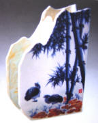 万济宁 江西南昌人,艺名云山陶人,1957年出生,1981年毕业于江西省陶瓷职工大学首届美术系,系中国工艺美术学会、江西省工艺美术学会会员。 他自幼随父学画,后从师于陆如、熊汉中等名师,作品装饰运用国画工笔、写意融为一体手法,对高温色釉、青花、青花釉里红、综合装饰在陶瓷上的运用有一定的造诣,曾多次获中国-景德镇国际陶瓷节精品奖,作品被《世界美术集》、《世界美术家集》、《景德镇陶瓷全集》等收录,还被多家博物馆、多名收藏家收藏。