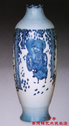 《巾帼杯》优秀奖,为纪念毛译东诞辰百年创作《鱼翔浅底》瓶,参加百件珍品展览;青花斗彩《凤牧》400件瓶获第二届国际陶瓷节三等奖;参与制作的稀土青釉白花瓷获89年轻工部优秀新产品奖及全国工艺美术百花奖一等奖;制作的彩色玲珑莲子皮灯入选全国工艺美术展览会,并获轻工业部优秀新产品奖。青花斗彩《柳叶蝴蝶》200件瓶、高温色釉彩《春景》150件花蕾瓶、青花斗彩《青花山水》100件罗卜瓶等作品多次刊登在《景德镇日报》等报刊、画册。并进赴日木、美国、香港及东南亚展览。作品颇受诲内外人士赞赏并被珍藏。 |