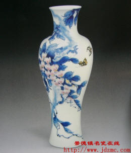 《蝴蝶绣球》碗、《青花罐》收录于《国际陶艺交流作品集况作品《荷花瓶》茯2001年第