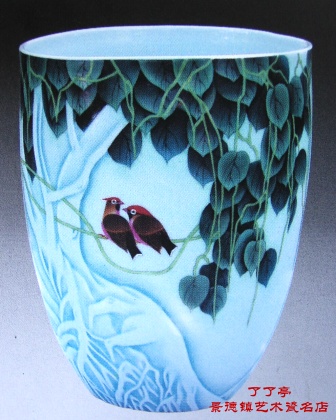 钟振华的综合装饰花鸟系列,采用了斗彩及色釉相结合的装饰手法,改变了传统单纯的斗彩形式,作品的现代装饰性强,极富灵气,耐人品味。 |