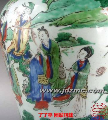 答:釉上三彩(用色以黄、绿、紫等三色为主,不用或少用红色,称为“三彩”,又因黄、绿、紫三色色调淡雅素净,又称“素三彩”),五彩(彩绘用色若以红、黄、绿、紫等五色为主,则称五彩),粉彩、珐琅彩