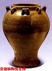隋代瓷器仍以青瓷为主,也有一定数量的白瓷。隋瓷的胎子普遍较厚,胎质坚硬,釉子无论青绿、青黄还是黄褐,均为玻璃质,施釉不到底,大多数都有垂流现象。隋瓷多光素无纹,部分带纹饰的主要以印、划贴为主。所谓印花,是把模子上的纹饰压印到瓷胎上,使纹饰凸起,再施釉入窑;划花是用尖状工具在胎子上划出纹饰,施釉入窑;贴花是将用手捏或模印等做成的小纹饰片贴到胎子上,再进行烧制。常见纹饰有团花,草叶、莲瓣。卷叶、波浪和弦纹等,个别的也有加饰黑褐彩的。