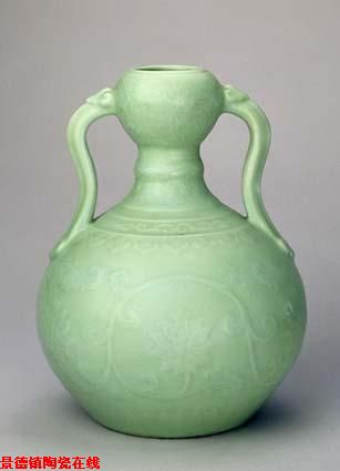清秋葵绿釉如意耳瓶