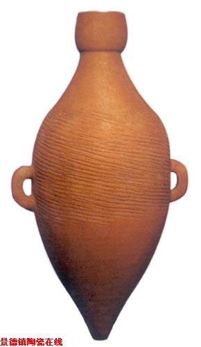 早期陶瓶的一种底部形式,瓶底呈尖锐的圆锥形。此底巧妙的运用了重力原理,汲水时由于重力作用,致使瓶口自然向下,待水将满时,由于重力作用,又使瓶身自动翻转,口部向上。最典型的为新石器时代仰韶文化尖底瓶。