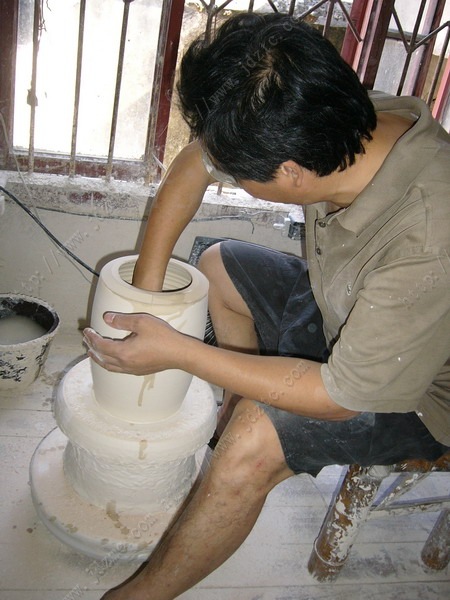 高贵与荣誉的背后--戴荣华,戴玉梅,诸葛伟世家制瓷部分工序图片 景德镇的陶瓷行业,虽然已经有千年的历史,但是制瓷工艺尤其是釉料、胎土等配方,历来是保密的重点,世代家传,决不外泄,因为涉及到大量的机密,通过镜头,您看到的是一个简约制作过程。 诸葛伟教授是一个多才多艺的艺术家,因为戴荣华世家的胎、釉的综合效果好,反过来也导致了制作的成品率很低,经常倒窑。所以许多情况下多由他本人亲自操刀,整个过程均由他一个人全程监管。