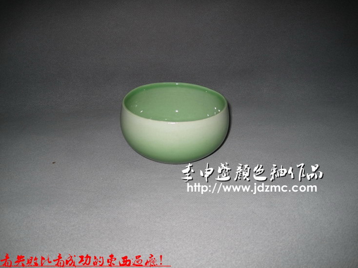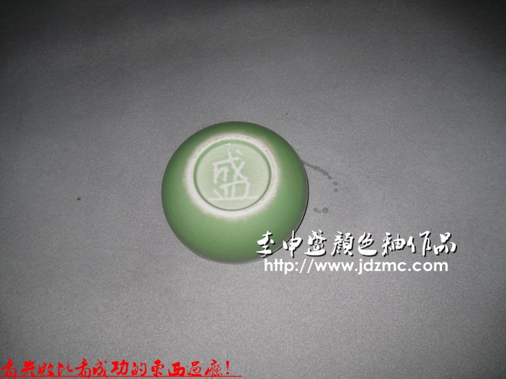 这个钵属于苹果绿,色彩鲜艳而且通透性比较好。可惜的时候是施釉过程中压缩机出现了问题,导致喷到一半,时有时无的,结果,钵体上层很薄,下层还凑合,内部勉强。
