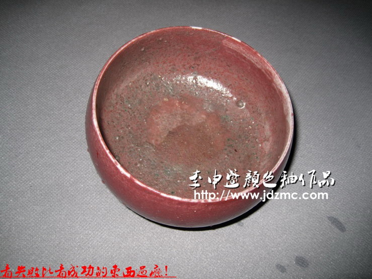 这两个本来是烧制仿制青铜味道的釉,可是窑温不对,坯体的泥巴用的不对,施釉的厚度不对,反正就是什么都不对啦,结果出的是一塌糊涂了。釉层起泡,用指甲一按就破。