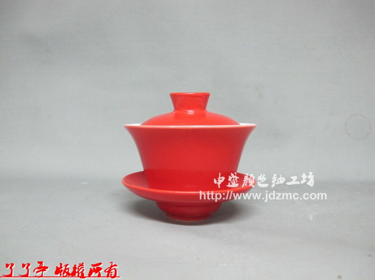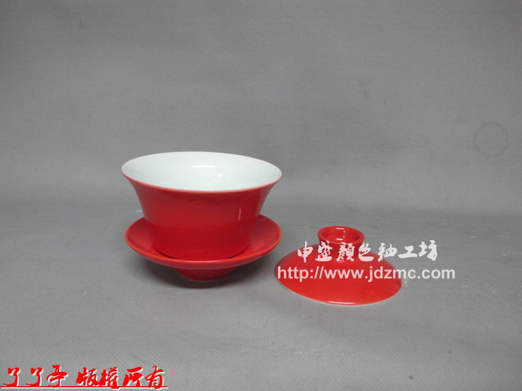 | 李申盛颜色釉作品:中国红 盖碗茶杯 高级陶瓷美术师 | |||||