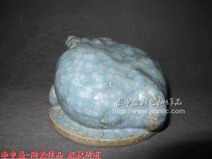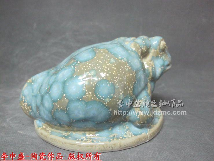 金蟾钱尊是今年笔者开发的系列形象,以时下最流行的金蟾符号载体,因为蟾蜍没有声囊,所以不会叫,故而不会露财,被商人誉为旺财、守财的福神。金蟾形态为三足、凸眼、大嘴,皮肤用高温色釉制作出了呈自然界蟾蜍的外观肌理疣状突起,衔着一枚铜板(铜板正在设计),金蟾嘴上衔着的铜钱有两层意思:一是天天有吃有进,只赚不赔;二是能够抓牢一切财宝,不放过任何机会;三是希望投入一枚钱币,便能增加数倍的财富,寓意一本万利。所以,金蟾被古人视为“祛病毒、助长寿、主富贵、呈祥瑞、辟五兵、镇凶邪”的吉祥符号是有理有据的。说到底,百姓只是借用了金蟾这个符号,以寄托他们的美好愿望而已。这是因为人人都渴望生活富贵、长生不老、逢凶化吉,因此在艺术创作中,人们便不自觉地把这种需要寄托到蟾蜍这个特定的艺术符号中去了,才有了三足金蟾的美丽传说,它体现了人们渴望幸福美好的世俗生活的集体无意识。