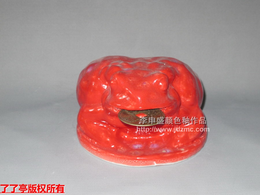 水立方红釉《三足金蟾》高温颜色釉蛤蟆