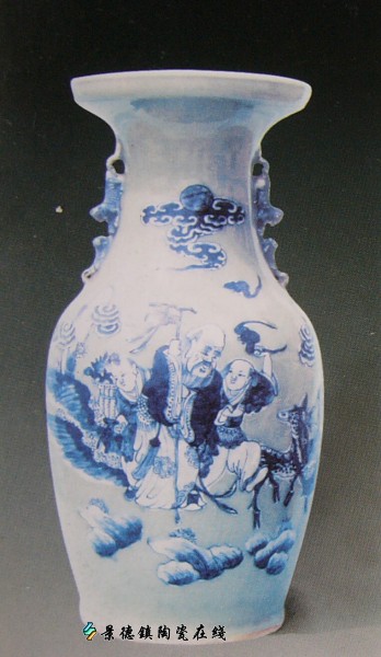 | 清道光·豆青青花加白福禄寿瓶 | |||||