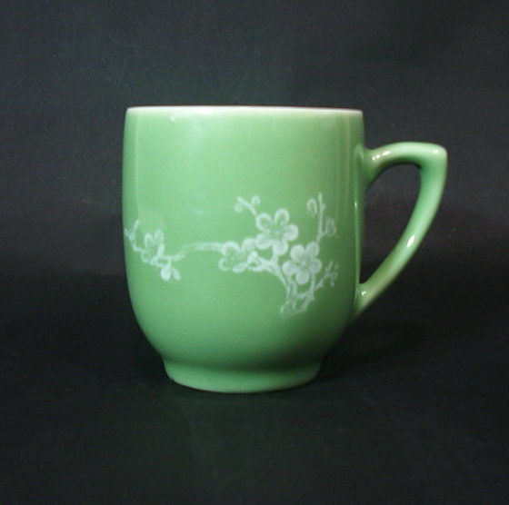 景德镇制:色地(绿釉)釉中堆白梅花杯 60~70年代