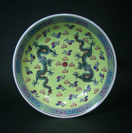 此盘原款为中国景德镇,英文MADE IN CHINA 16磨掉后改为"大清乾隆年制"章款. |
