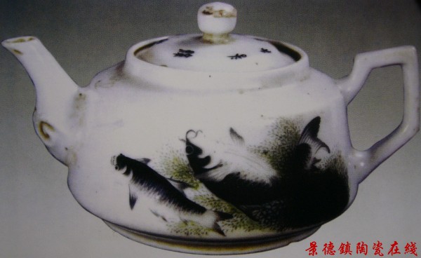 张沛轩 粉彩鱼藻纹茶壶 民国时期