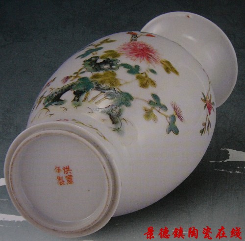 粉彩花卉瓶 洪宪年制红款