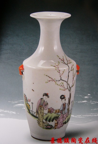 胡镜圣作 粉彩桃花美女瓶 民国时期