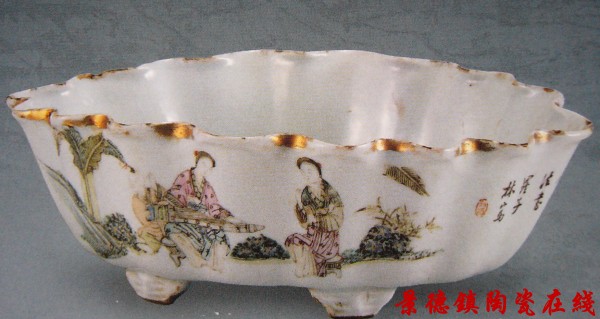 罗子林 粉彩桃花美女水仙盆 民国时期