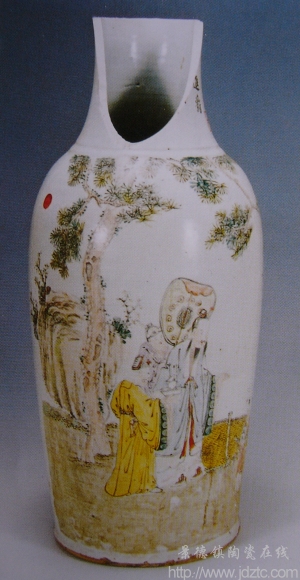 俞子明《人物》双耳大瓶 民国时期 白文宏藏