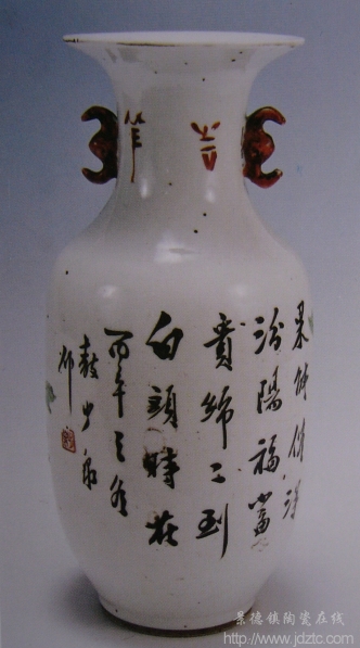 敖少泉《富贵白头》蝠耳瓶 白文宏藏