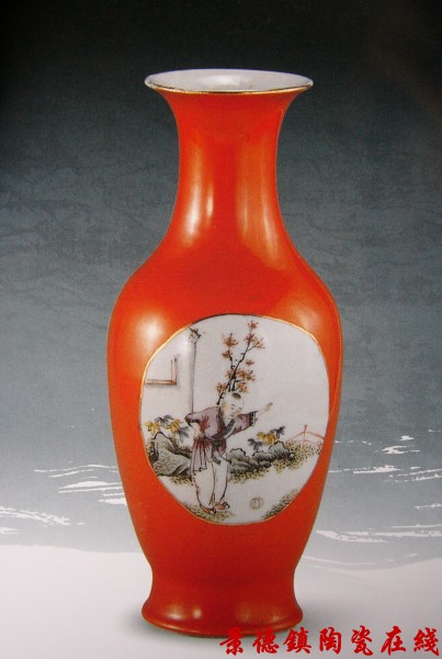 ![]() ![]() ![]() 珊瑚红开窗人物纹花瓶 |