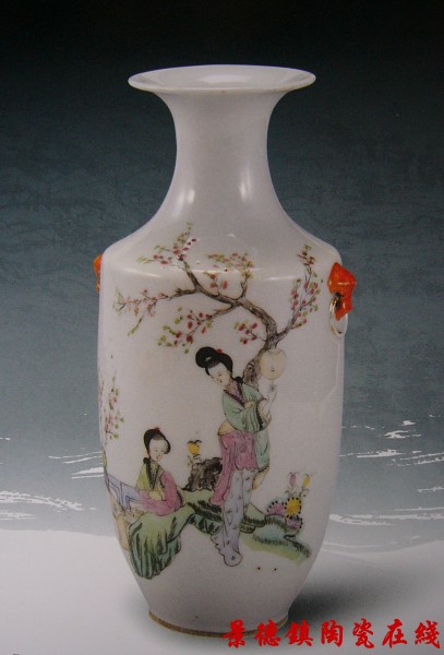 | 胡镜圣作 粉彩桃花美女瓶 民国时期 | |||||