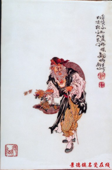 ![]() ![]() ![]() 王步 粉彩卖花翁 瓷板 |